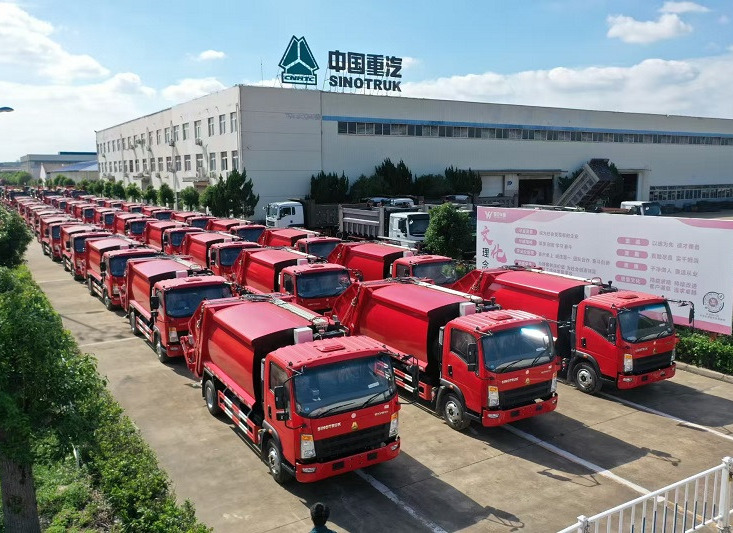 รถบรรทุกขยะแบบโหลดท้าย HOWO ยี่ห้อดังของจีน Sinotruk เป็นรถเก็บขยะขนาดหนักที่ออกแบบและผลิตขึ้นเป็นพิเศษ รถบรรทุกอัดขยะหนัก HOWO มาพร้อมตัวถังอัดขยะขนาด 22 ลูกบาศก์เมตร ผลิตจากวัสดุ St52 ระดับสากล เทียบเท่าวัสดุ Q355 มีความหนาของผนังและพื้น 5 มิลลิเมตร นอกจากนี้ยังติดตั้งระบบควบคุมไฟฟ้า CAN และระบบควบคุมจอยสติ๊กไฮดรอลิก พร้อมอุปกรณ์ยกเอียงด้านหลังสำหรับถังโลหะขนาด 770 ลิตร และ 1100 ลิตร เหมาะสำหรับตลาดตะวันออกกลาง รวมถึงซาอุดีอาระเบีย ดูไบ โอมาน เยเมน จอร์แดน เป็นต้น รถบรรทุกขยะแบบโหลดท้าย HOWO รุ่นใหม่นี้ใช้สำหรับเก็บ อัด และขนส่งขยะเป็นหลัก และสามารถใช้งานได้ในเมือง โรงงาน ชุมชน และพื้นที่อื่นๆ ตามความต้องการ