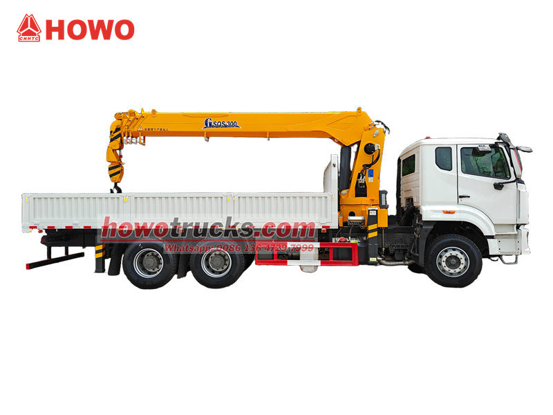 ●รถบรรทุกบริการ HOWO ที่ติดตั้งเครนขนาด 20 ตัน ผสานฟังก์ชันการขนส่งสินค้าและการยกเข้าด้วยกัน ทำให้สามารถขนถ่ายสินค้าได้ด้วยตนเองโดยไม่ต้องใช้อุปกรณ์ยกเพิ่มเติม ซึ่งช่วยเพิ่มประสิทธิภาพในการปฏิบัติงานได้อย่างมาก