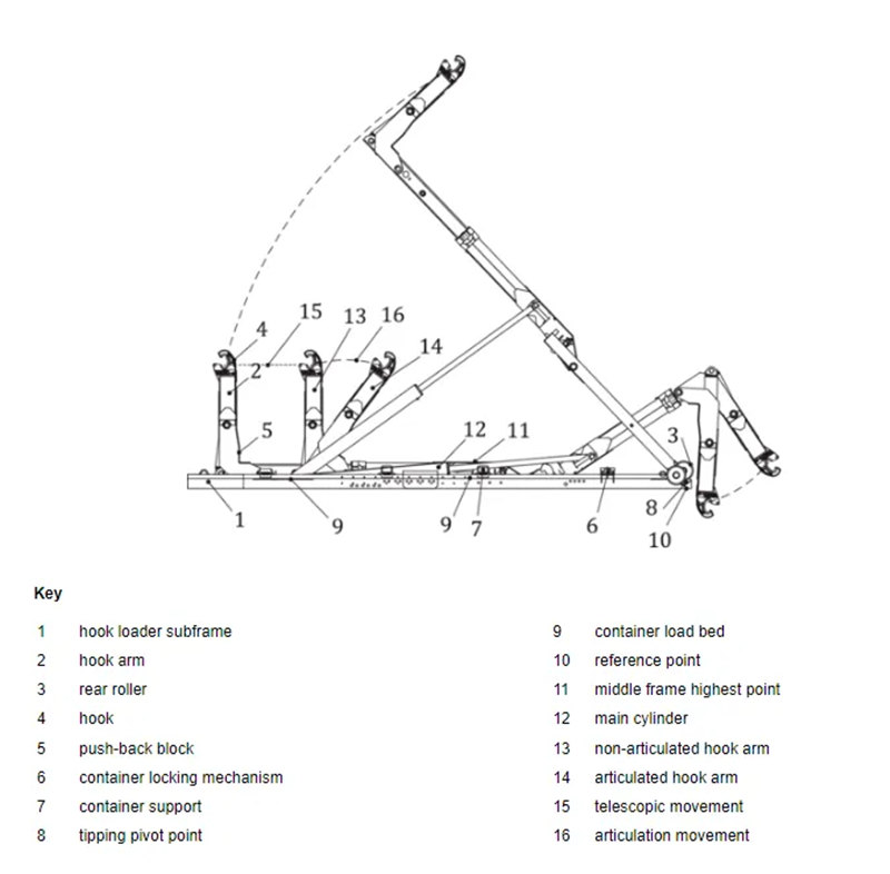 ♦ระบบไฮดรอลิกเป็นตัวขับเคลื่อนโครงสร้างส่วนบนของรถบรรทุกขนส่งขยะแบบยกขึ้นลงได้ น้ำมันแรงดันสูงจะขับแขนขอเกี่ยวให้จับ ยก และลดถังขยะลง ในขณะที่กลไกการล็อกจะยึดถังขยะให้แน่นอย่างรวดเร็ว