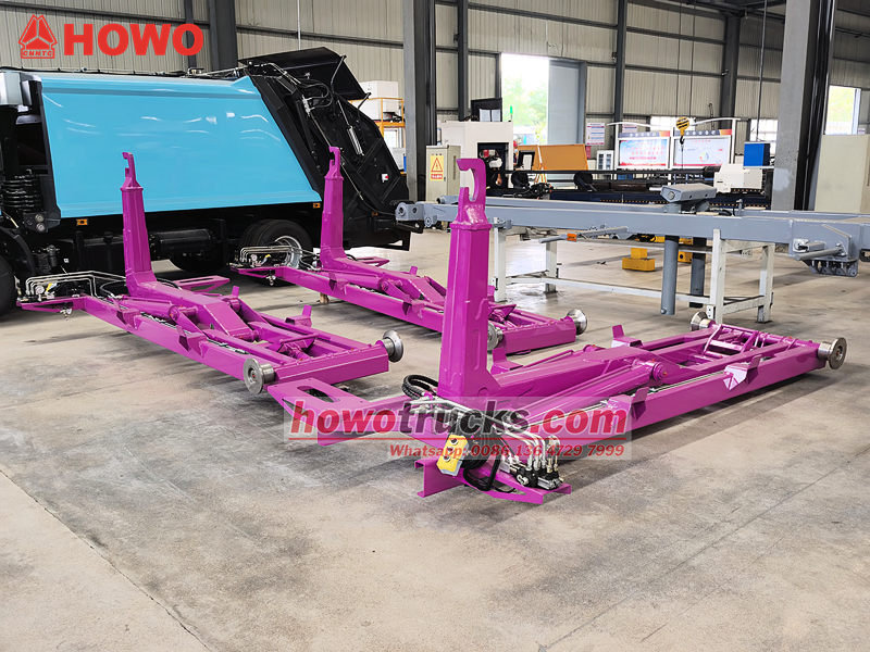 ●โดยหลักแล้วประกอบด้วยระบบขอเกี่ยวไฮดรอลิก ชุดประกอบถังขยะ อุปกรณ์ล็อค และระบบควบคุมการทำงาน ขอเกี่ยวไฮดรอลิกช่วยให้รถสามารถบรรทุกและขนถ่ายถังขยะได้อย่างรวดเร็ว ทำให้สามารถใช้ "รถคันเดียว ขนถังขยะได้หลายถัง" ซึ่งช่วยเพิ่มประสิทธิภาพในการเก็บและขนส่งขยะอย่างมาก และลดต้นทุนการดำเนินงาน