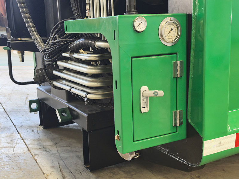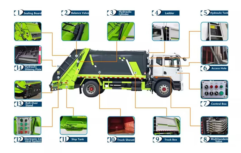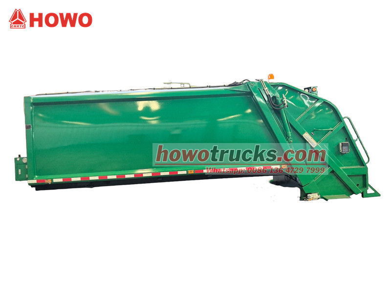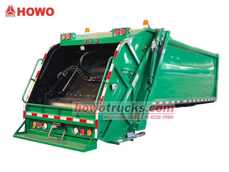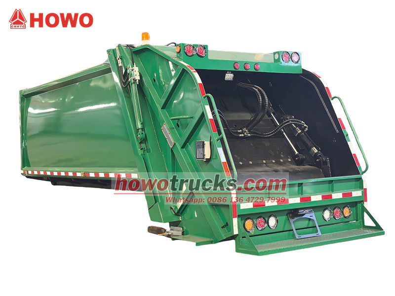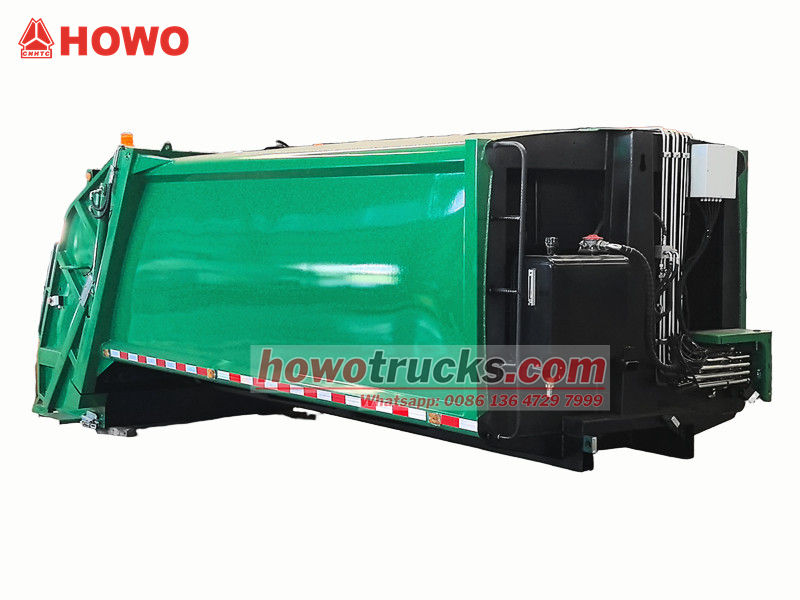 ตัวถังรถอัดขยะแบบบรรทุกด้านหลังขนาด 10 ลูกบาศก์เมตร เป็นระบบการทำงานหลักของรถ ประกอบด้วยช่องเก็บขยะแบบปิดสนิท ตัวดันอัด และกลไกการโหลด โครงสร้างที่แข็งแรงทนทานและการปิดผนึกที่ดีเยี่ยมช่วยป้องกันการรั่วไหลของน้ำเสียและกลิ่น ในระหว่างการทำงาน หลังจากที่ถังโหลดรับขยะแล้ว ใบมีดขูดที่ขับเคลื่อนด้วยระบบไฮดรอลิกจะขูดขยะเข้าไปในช่อง จากนั้นตัวดันอัดจะใช้แรงดันเพื่ออัดขยะให้แน่น ลดปริมาตร และเพิ่มความจุในการบรรทุก ความจุในการบรรทุกสูงสุดคือ 12 ลูกบาศก์เมตร และรองรับวิธีการโหลดและขนถ่ายที่หลากหลายเพื่อตอบสนองความต้องการในการใช้งานที่แตกต่างกัน