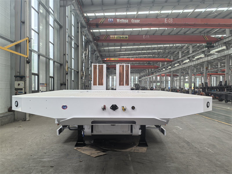 รถพ่วงพื้นเรียบ 3 เพลา ขนาด 45 ตัน เป็นยานพาหนะที่ออกแบบมาโดยเฉพาะสำหรับการขนส่งเครื่องจักรและอุปกรณ์ขนาดใหญ่ ติดตั้งระบบข้อต่อล้อที่ห้า JOST 50# และระบบกันสะเทือนแบบลมพร้อมอุปกรณ์ยกเพลาหน้า ติดตั้งเพลาบังคับเลี้ยวอัตโนมัติ 13 ตัน จำนวน 3 เพลา รถพ่วงคันนี้ติดตั้งระบบเบรก WABCO EBS เพื่อความปลอดภัยในการขับขี่ ทางลาดไฮดรอลิกและพื้นเรียบที่ออกแบบมาเป็นพิเศษปูด้วยพื้นไม้คุณภาพสูง ให้การป้องกันการลื่นไถลที่ดีเยี่ยม เมื่อเทียบกับรุ่นทั่วไป เพลาบังคับเลี้ยวอัตโนมัติช่วยลดการสึกหรอของยางได้อย่างมีประสิทธิภาพ ในขณะที่ฟังก์ชั่นยกของระบบกันสะเทือนแบบลมช่วยเพิ่มความสะดวกในการเคลื่อนที่ขณะไม่บรรทุก พื้นไม้ช่วยลดแรงเสียดทานและเพิ่มประสิทธิภาพในการขนถ่ายสินค้า