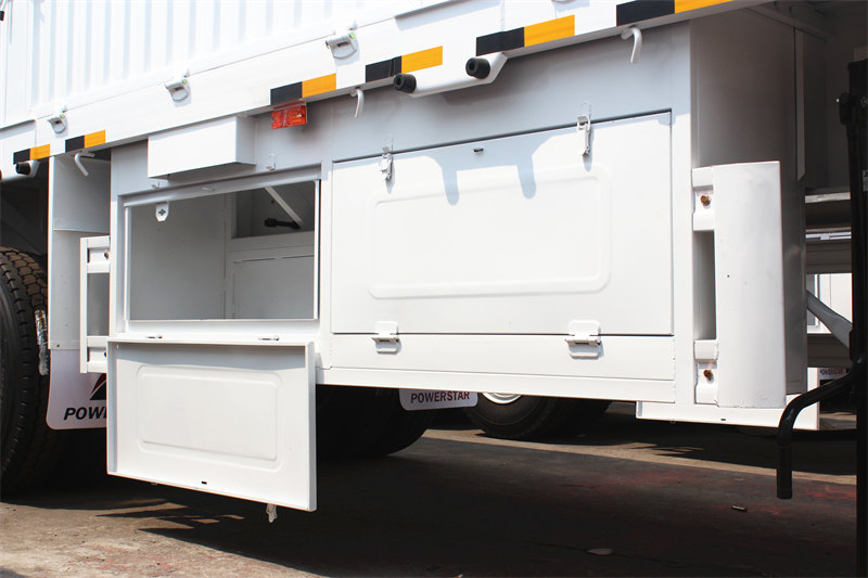 รถพ่วงบรรทุกสินค้าแบบเปิดข้าง 3 เพลาของ CS TRUCKS มีความสามารถในการรับน้ำหนักได้สูงสุดถึง 45 ตัน ติดตั้งเพลารับน้ำหนักมาก 13 ตัน จำนวน 3 เพลา และยางขนาด 12R22.5 จำนวน 12 เส้น จึงมั่นใจได้ทั้งความแข็งแรงและความสามารถในการบรรทุกที่ยอดเยี่ยม การออกแบบแบบเปิดข้างช่วยให้การขนถ่ายสินค้าทำได้อย่างรวดเร็วจากหลายทิศทาง เมื่อรวมกับโครงตัวถังเหล็กกล้าความแข็งแรงสูง Q345B และระบบช่วงล่างที่ยืดหยุ่น จึงเป็นตัวเลือกที่มีประสิทธิภาพและใช้งานได้จริงสำหรับการขนส่งสินค้าจำนวนมากและสินค้าหนักในระยะกลางถึงระยะไกล