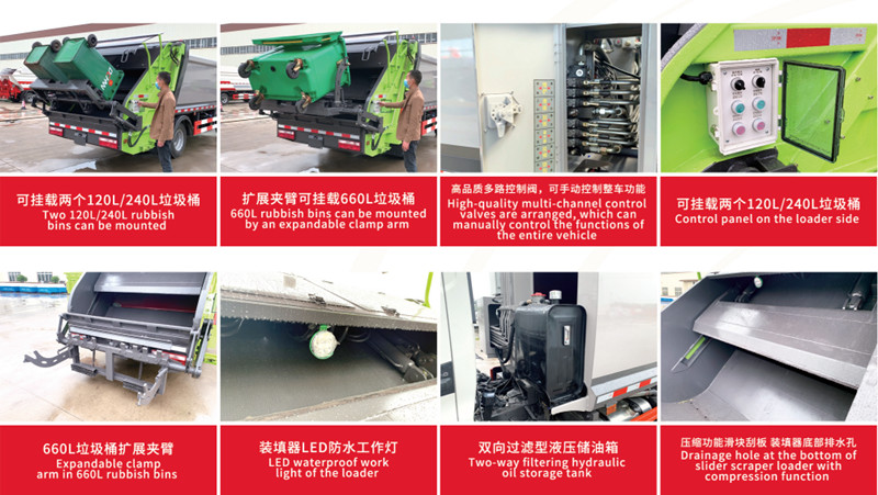 ➤กระบวนการบรรทุก การอัด และการขนถ่ายของยานพาหนะทั้งหมดถูกควบคุมโดยกลไกไฟฟ้าไฮดรอลิก ทำให้การใช้งานง่ายและเป็นอัตโนมัติสูง