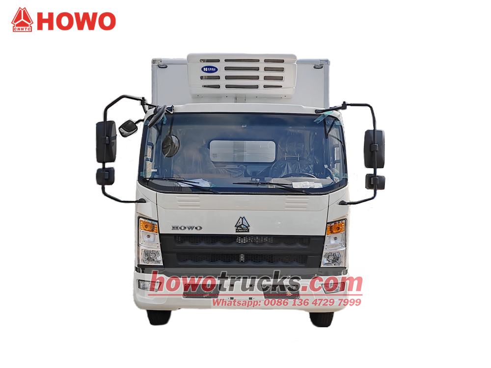 รถบรรทุกห้องเย็น HOWO 4x2 ใช้แชสซีรถบรรทุกขนาดเล็ก HOWO ระยะฐานล้อ 3360 มม. ติดตั้งเครื่องยนต์ Cummins ISF3.8s4R154 154 แรงม้า และเกียร์ WLY6TS55 6 สปีด ตู้แช่เย็นด้านบนมีขนาด 4200×2200×ตู้คอนเทนเนอร์นี้มีขนาด 2050 มม. ผลิตจากไฟเบอร์กลาส, FRP + โฟม PU + แผ่น FRP หนา 105 มม. เป็นโครงสร้างแบบแซนด์วิชปิดสนิท มีประตูเปิดด้านขวา และประตูท้ายคู่ขนาดเต็ม พื้นกันลื่นและทนทานต่อการสึกหรอ และใช้ชุดทำความเย็น HX-580 ตู้คอนเทนเนอร์สามารถบรรทุกสินค้าได้ 5 ตัน และใช้สำหรับการขนส่งสินค้าแช่เย็นประเภทอาหารทะเลเป็นหลัก