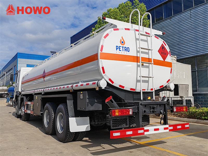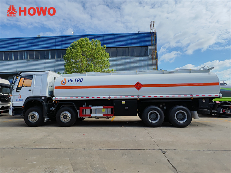 รถบรรทุกขนส่งน้ำมัน Sinotruk HOWO 8x4 ขนาด 25 ลูกบาศก์เมตร ใช้แชสซี Sinotruk HW76 ระบบขับเคลื่อน 8x4 ระยะฐานล้อ 1800+4625+1350 มม. ติดตั้งเครื่องยนต์ Sinotruk WD615.47 เกียร์ HW19710 ส่วนบนเป็นถังน้ำมันเหล็กกล้าคาร์บอนขนาด 25 ลูกบาศก์เมตร แบ่งเป็น 6 ช่อง บรรจุน้ำมันได้ 3, 4, 4, 4, 5 และ 5 ลูกบาศก์เมตร ตามลำดับ แต่ละช่องมีฝาปิดช่องตรวจสอบมาตรฐานยุโรป วาล์วด้านล่าง วาล์วระบายน้ำมัน ทางเดินด้านบน ราวกันตก วาล์วฉุกเฉิน 1 ตัว และท่อระบายน้ำมัน 2 ท่อ