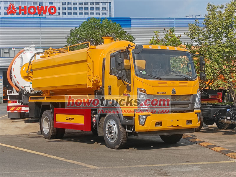 รถฉีดน้ำแรงดันสูงสำหรับทำความสะอาดท่อระบายน้ำ HOWO 10000L เป็นยานพาหนะด้านสุขอนามัยประสิทธิภาพสูงที่ผสานรวมฟังก์ชั่นการทำความสะอาดด้วยแรงดันสูงและการดูดสิ่งปฏิกูลด้วยระบบสุญญากาศ สร้างขึ้นบนแชสซีสำหรับงานหนัก HOWO 4×2 ใช้ประโยชน์จากประสิทธิภาพอันทรงพลังของปั๊มน้ำแรงดันสูง PINFL จากเยอรมนีและปั๊มสุญญากาศหมุนเวียนน้ำ SK-12 รวมกับถังคู่แบบแยกส่วนขนาด 7000 ลิตร + 3000 ลิตร เพื่อปฏิบัติงานต่างๆ เช่น การขุดลอกท่อและการดูดตะกอนได้อย่างมีประสิทธิภาพ เป็นอุปกรณ์สุขอนามัยที่ครบครันและใช้งานได้หลากหลาย