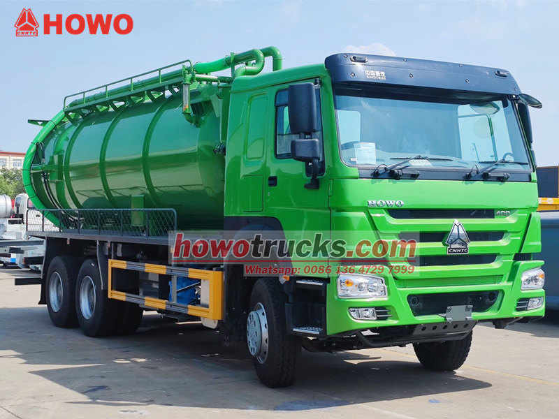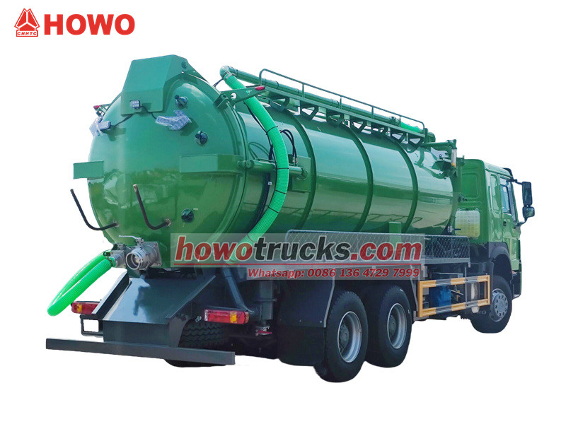 Jurop pump, 4×4, 6×6, RHD drive is optionalรถดูดสิ่งปฏิกูล SINOTRUK HOWO เป็นยานพาหนะสำหรับงานสุขาภิบาลระดับมืออาชีพ สร้างขึ้นบนแชสซีงานหนัก HOWO 6x4 โดยทำงานบนหลักการของแรงดันลบสุญญากาศ ใช้เป็นหลักในการดูดและขนส่งของเสียเหลว เช่น กากตะกอนและอุจจาระจากท่อระบายน้ำ ถังบำบัดน้ำเสีย และท่อระบายน้ำฝน ช่วยแก้ปัญหาการปนเปื้อนและการทำความสะอาดในท่อใต้ดินในเมืองและร่องน้ำประเภทต่างๆ ได้อย่างมีประสิทธิภาพ ส่วนประกอบหลัก ได้แก่ ปั๊มสุญญากาศ MORO จากอิตาลีที่มีประสิทธิภาพสูง และถังเก็บสิ่งปฏิกูลขนาดใหญ่ ให้ความสามารถในการดูดในระยะไกลและความลึกในการดูดในแนวดิ่งสูง