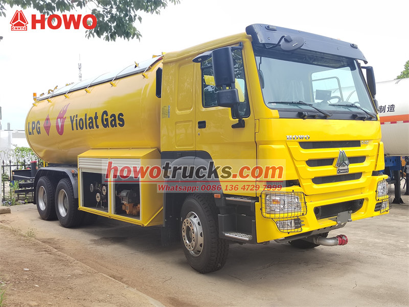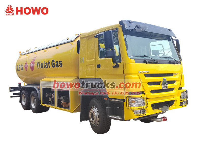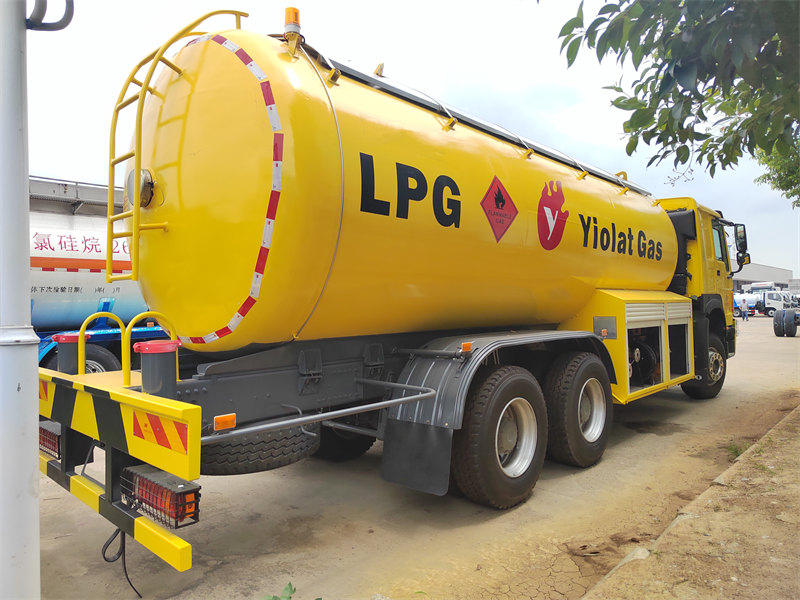 18000รถบรรทุกเติมก๊าซ LPG ขนาด 20,000 ลิตร รุ่น HOWO เป็นรถบรรทุกถังแรงดันสูงที่ออกแบบมาโดยเฉพาะสำหรับการขนส่งก๊าซปิโตรเลียมเหลว สร้างขึ้นบนแชสซีขับเคลื่อน 6x4 ของ HOWO ขับเคลื่อนด้วยเครื่องยนต์ 340 แรงม้าที่ผ่านมาตรฐานการปล่อยมลพิษ Euro III ตัวถังทำจากเหล็ก Q345R พร้อมแผ่นปิดปลายหนา 12 มม. มีความจุ 20,000 ลิตร ผ่านกระบวนการพ่นทราย กำจัดสนิม และการเคลือบป้องกันการกัดกร่อนหลายขั้นตอนเพื่อให้มั่นใจถึงความทนทานในระยะยาว