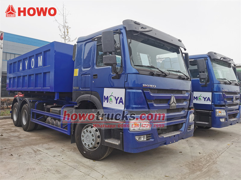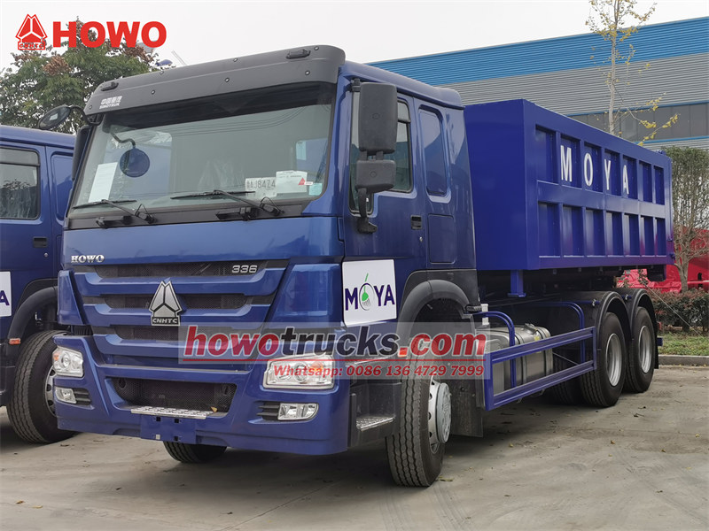 รถบรรทุกขยะยกตะขอสำหรับงานหนัก Sinotruk HOWO ส่งออกไปยังแอฟริกา