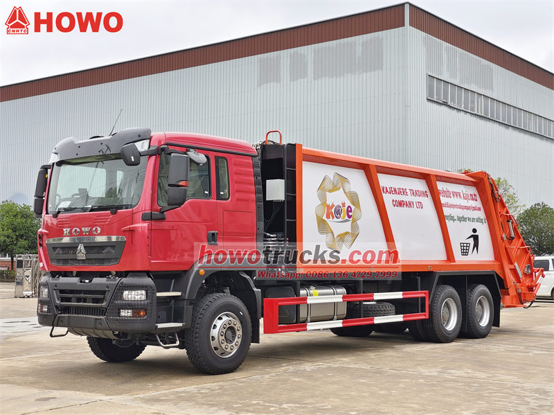 รถบรรทุกอัดขยะ HOWO ขนาด 20 ลูกบาศก์เมตร พร้อมจัดส่งไปยังแอฟริกา