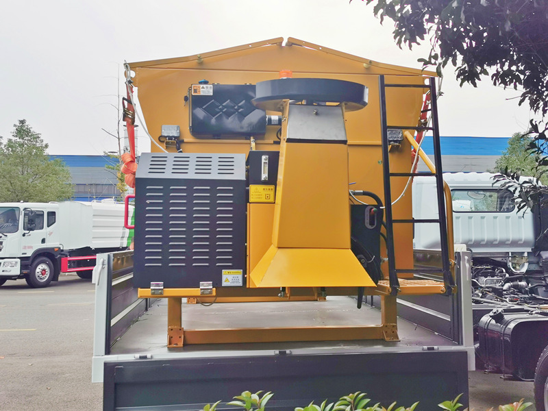เครื่องพ่นสารละลายหิมะขนาด 4 ลูกบาศก์เมตร รุ่น CS-SJ4000 ติดตั้งบน ตัวถังบรรทุกสินค้าแบบเปิดข้างได้เต็มรูปแบบเครื่องพ่นเกลือแบบปรับขนาดได้ ความจุ 4000 ลิตร ผลิตจากสแตนเลสคุณภาพสูง Q235 มอเตอร์ทำงานร่วมกับระบบโซ่เพื่อการทำงานที่มีประสิทธิภาพ ความกว้างในการพ่นสามารถปรับได้ 2-10 เมตร และความสามารถในการพ่นเกลือ 20-150 กรัม/ตารางเมตร ปรับได้เต็มที่ เส้นผ่านศูนย์กลางแผ่นพ่น 550 มิลลิเมตร ความเร็วในการทำงาน 5-20 กิโลเมตร/ชั่วโมง ควบคุมด้วยระบบ PLC จากเยอรมนีภายในห้องควบคุมเพื่อความปลอดภัยในการทำงาน