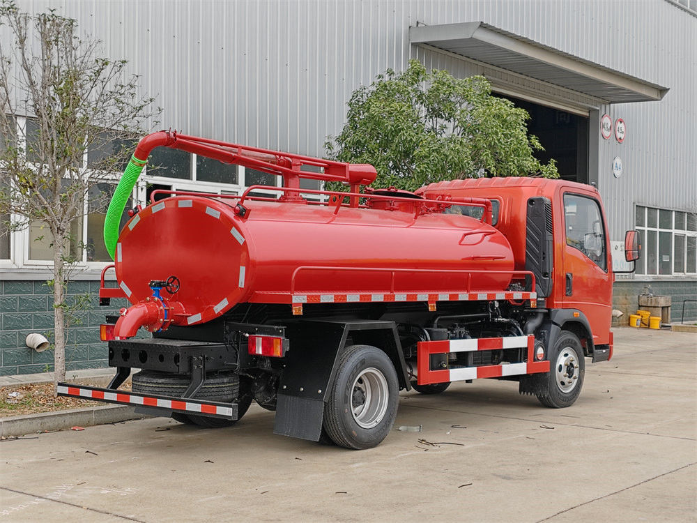 รถดูดสิ่งปฏิกูล HOWO 4x4 RHD 4cbm ใช้โครงสร้างตัวถัง HOWO Hanjiang 1880 แบบแถวเดียว ขับเคลื่อนสี่ล้อ 4x4 พวงมาลัยขวา ระยะฐานล้อ 3360 มม. ติดตั้งเครื่องยนต์ YN4102QBZL 116 แรงม้า เกียร์ WLY6TS40 6 สปีด ตัวถังด้านบนเป็นถังสิ่งปฏิกูลขนาด 4 ลูกบาศก์เมตร ทำจากเหล็กกล้าคาร์บอน ป้องกันการกัดกร่อนและสนิม ติดตั้งปั๊มสุญญากาศแบบวงแหวนน้ำ Yifeng SK-6 ความเร็วในการสูบสูงสุด 6 ลูกบาศก์เมตร/นาที ความเร็วรอบ 970 รอบต่อนาที แขนดูดสิ่งปฏิกูลยาว 6 เมตร ติดตั้งช่องมองถังสิ่งปฏิกูล วาล์วระบายน้ำล้น เกจวัดแรงดัน วาล์วระบายอากาศ ฯลฯ