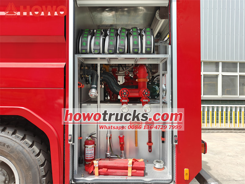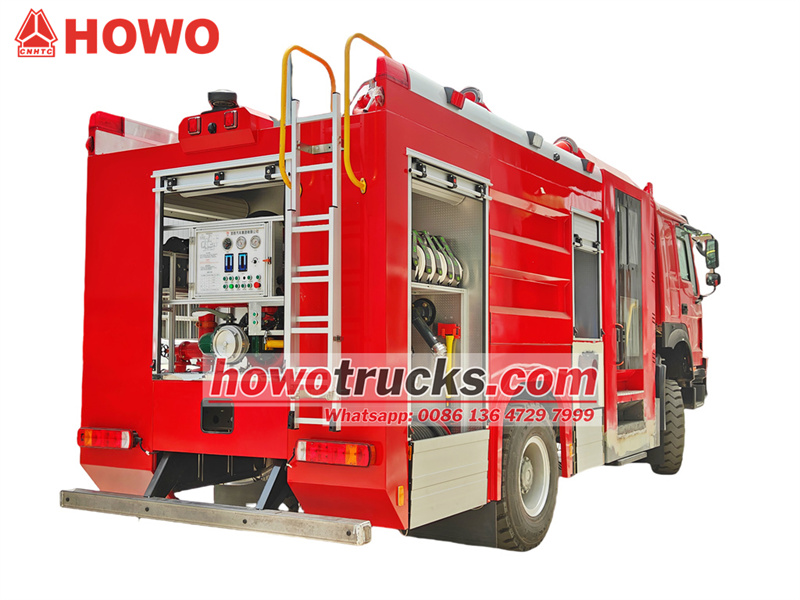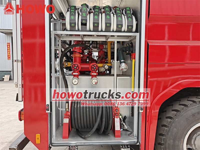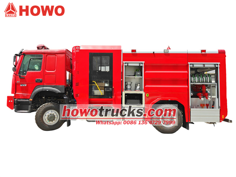 7000Sinotruk HOWO รถดับเพลิงโฟมบรรทุก รถดับเพลิงแบบปั๊มน้ำ HOWO เป็นรถดับเพลิงอุตสาหกรรมระดับมืออาชีพ ซึ่งอาจเรียกได้ว่าเป็นรถดับเพลิง รถหน่วยดับเพลิง รถอุปกรณ์ดับเพลิง รถบริการดับเพลิง หรือรถปั๊มน้ำดับเพลิง รถดับเพลิงแบบปั๊มน้ำ HOWO ออกแบบและผลิตโดยใช้แชสซีรถบรรทุกหนักออฟโรด HOWO 4x4 เป็นพื้นฐาน มีห้องโดยสารสองแถวที่ออกแบบมาเป็นพิเศษ ที่นั่งด้านหน้าเป็นแบบถุงลมเพื่อความสะดวกสบาย และด้านหลังมีที่นั่ง SCBA 4 ชุด สำหรับเก็บและใช้งานอุปกรณ์ช่วยหายใจ ผสานรวมสารดับเพลิงทั้งน้ำและโฟม และอุปกรณ์กู้ภัยดับเพลิงหลายชนิด โดยส่วนใหญ่ใช้ในการดับเพลิงและภารกิจกู้ภัย มีถังน้ำขนาด 4000 ลิตร และถังโฟมขนาด 1000 ลิตร ทั้งหมดทำจากสแตนเลส สามารถรับมือกับสถานการณ์เพลิงไหม้ที่ซับซ้อนได้อย่างมีประสิทธิภาพ เพื่อป้องกันการลุกลามของไฟและลดความสูญเสียระหว่างเกิดเหตุเพลิงไหม้