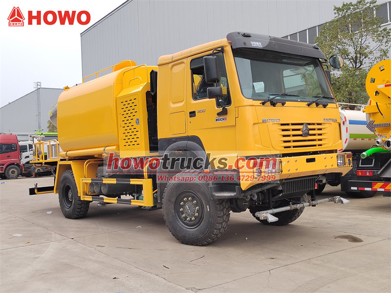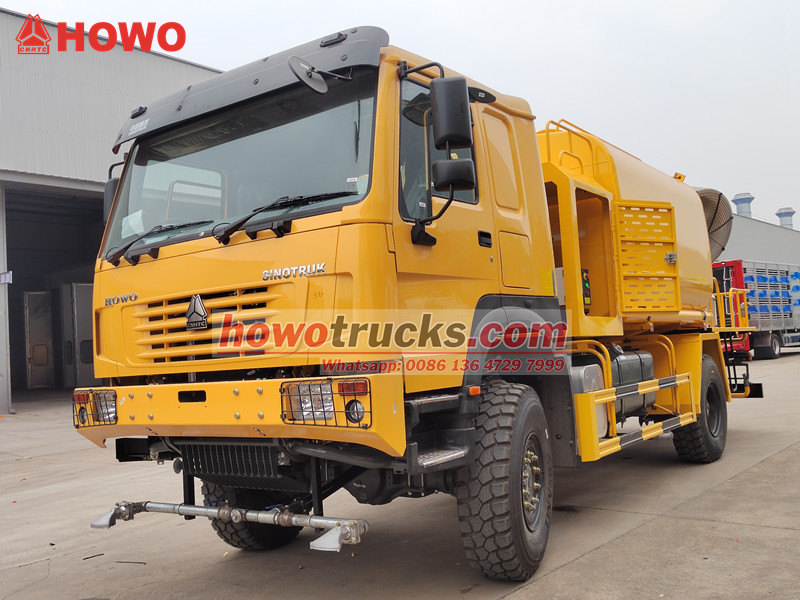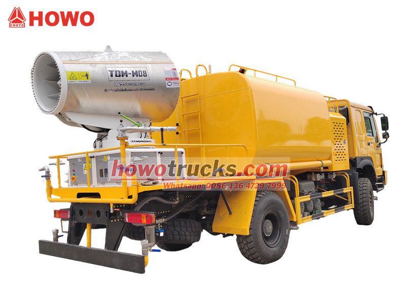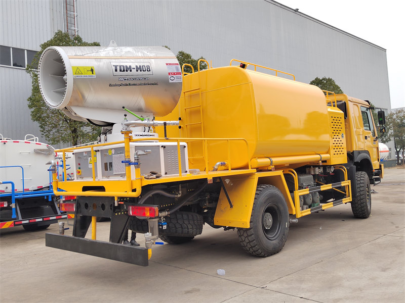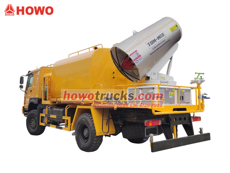 รถฉีดน้ำแรงดันสูง HOWO 4×4 สร้างขึ้นบนแชสซีขับเคลื่อนสี่ล้อของ HOWO ติดตั้งเครื่องยนต์ 300 แรงม้า และระบบขับเคลื่อน 4×4 ให้ประสิทธิภาพการทำงานที่ยอดเยี่ยมในภูมิประเทศที่ซับซ้อน โดดเด่นด้วยปืนฉีดน้ำระยะไกลพิเศษ 80 เมตร พร้อมหัวฉีด 90 หัว สามารถฉีดละอองน้ำละเอียด (20-200 ไมโครเมตร) ครอบคลุมพื้นที่สูงสุด 20,000 ตารางเมตร เมื่อรวมกับถังเก็บน้ำขนาดใหญ่ 10,000 ลิตร และระบบฉีดพ่นแรงดันสูง จึงสามารถทำงานได้อย่างมีประสิทธิภาพ เช่น การลดฝุ่นบนถนน การควบคุมฝุ่นในสถานที่ก่อสร้าง และการฉีดพ่นทางการเกษตร เหมาะอย่างยิ่งสำหรับการควบคุมฝุ่นในพื้นที่เหมืองแร่ ท่าเรือ การรักษาสิ่งแวดล้อมในเมือง และสาขาอื่นๆ