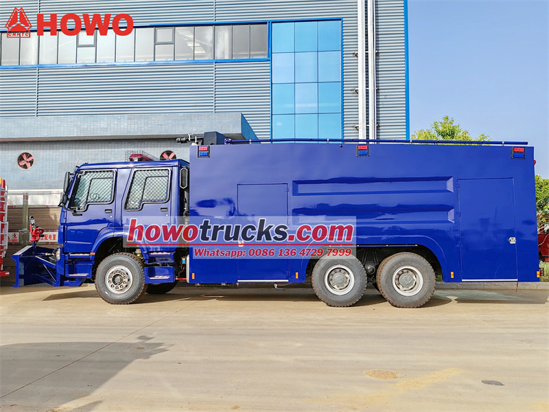 ผู้ขับขี่ต้องมีทั้งทักษะการขับขี่เฉพาะทางและความสามารถในการรับมือกับเหตุฉุกเฉิน โดยเน้นมาตรการความปลอดภัยเชิงป้องกันและการปฏิบัติงานร่วมกันจากระยะไกล ตัวถังของรถดับเพลิงควบคุมการจลาจล Howo ทำจากเหล็กกล้าคาร์บอนความแข็งแรงสูงที่มีความหนา 6-10 มม. สามารถบรรจุน้ำได้ 6,000 ลิตรและโฟม 2,000 ลิตร ทำให้เป็นอุปกรณ์ความปลอดภัยที่ขาดไม่ได้สำหรับอุตสาหกรรมปิโตรเลียม เคมี และอุตสาหกรรมอื่นๆ
