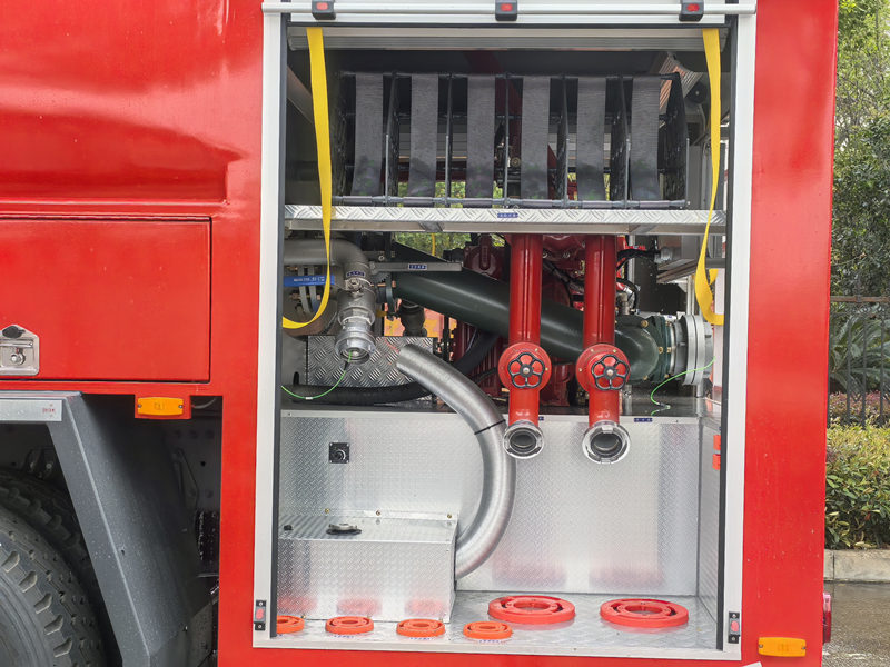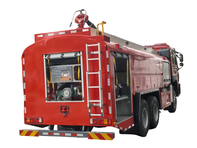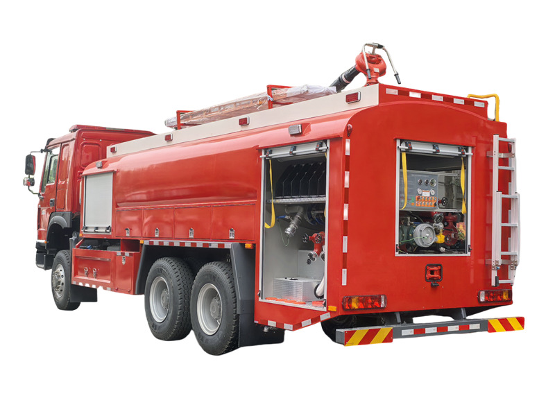 รถดับเพลิง HOWO 6×6 มีถังเก็บน้ำขนาด 8000 ลิตร และถังโฟมสแตนเลสขนาด 2000 ลิตร ติดตั้งปั๊มดับเพลิงแรงดันปกติ CB10/60 และปืนฉีดน้ำดับเพลิง PL48 ที่มีระยะฉีดไกลกว่า 70 เมตร ทำให้สามารถดับเพลิงขณะเคลื่อนที่ได้ การจัดวางห้องปั๊มมีความเหมาะสม ช่องเก็บอุปกรณ์ใช้ประตูม้วนอลูมิเนียมอัลลอยด์และโครงสร้างแบบโมดูลาร์ที่ติดตั้งอย่างแน่นหนา รถดับเพลิงออฟโรด HOWO ผสานโครงสร้างความแข็งแรงสูง ระบบดับเพลิงที่มีประสิทธิภาพ และการออกแบบที่ใช้งานง่าย จึงมีสมรรถนะที่โดดเด่นในด้านความน่าเชื่อถือ ประสิทธิภาพการทำงาน และความสามารถในการปรับตัวเข้ากับสภาพแวดล้อม