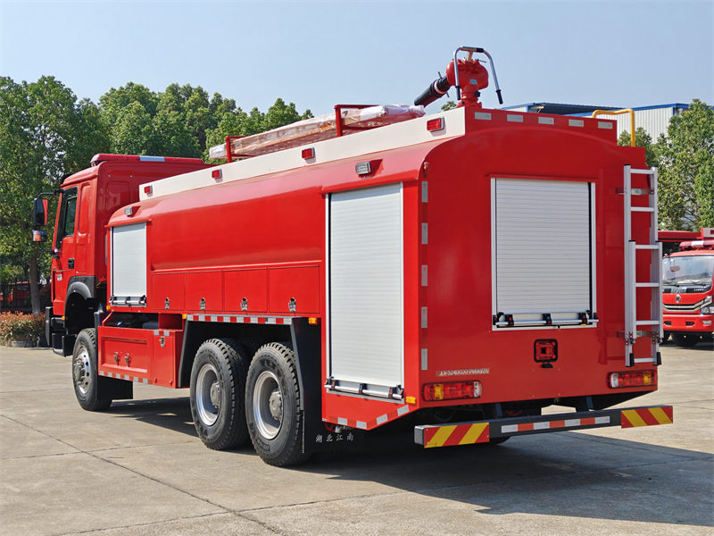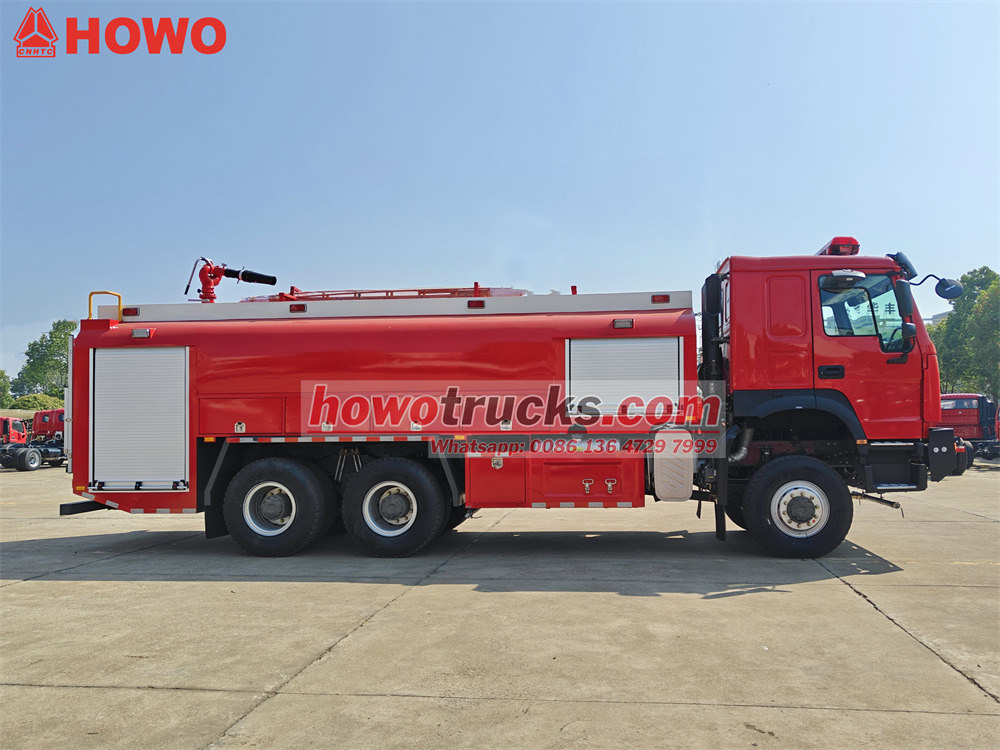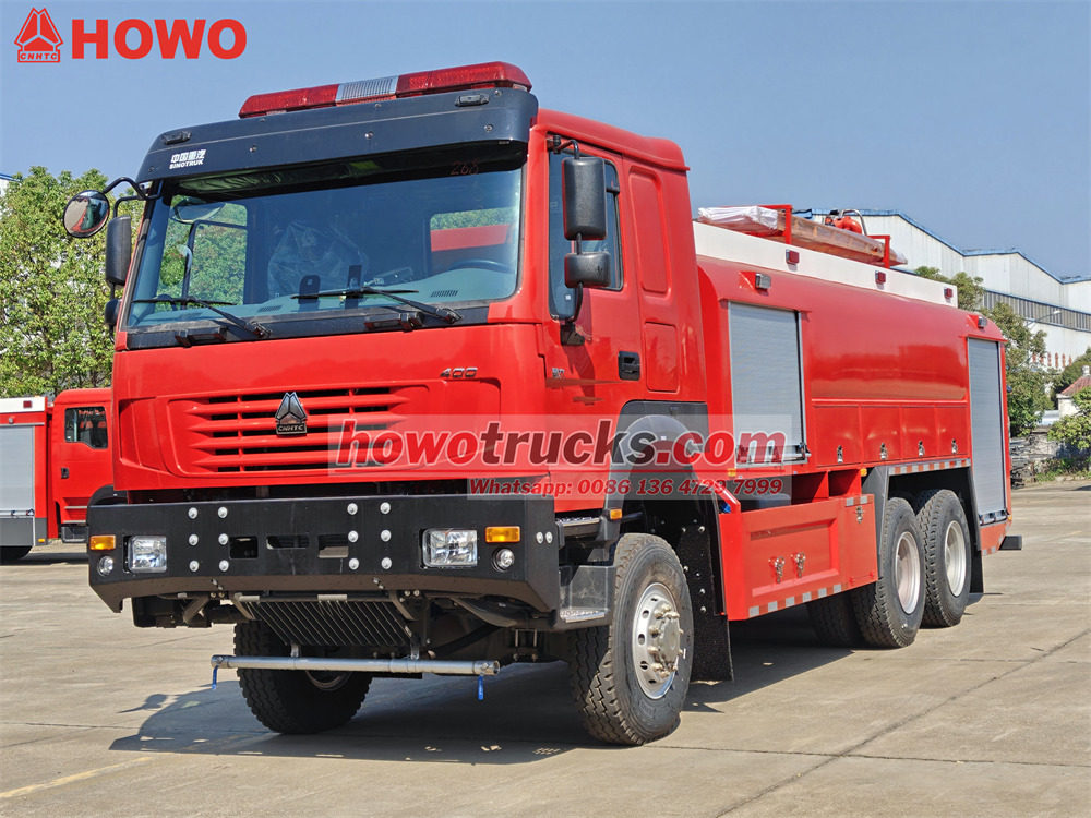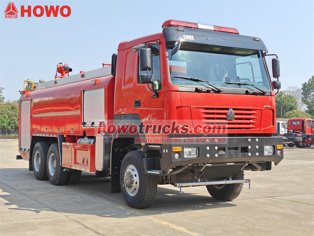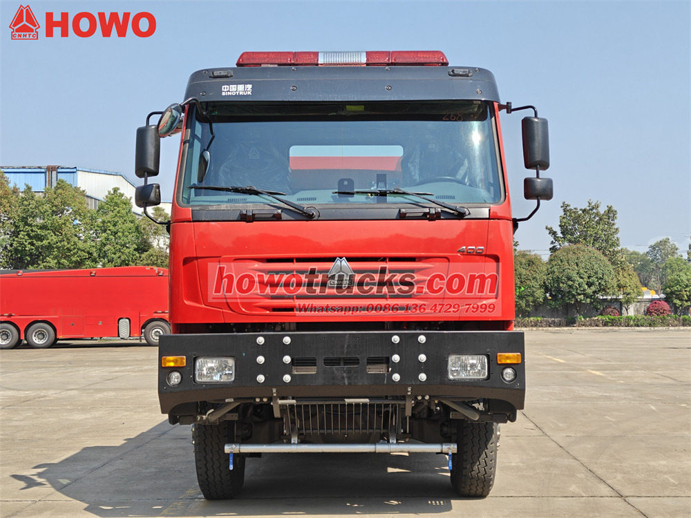 The รถบรรทุกดับเพลิง Howo สำหรับใช้งานนอกถนน ใช้แชสซีส์สำหรับงานหนักของ Sinotruk พร้อมระบบขับเคลื่อน 6x6 และติดตั้งอุปกรณ์ต่างๆ ดังนี้WP12S400 E201 รถดับเพลิง Howo 6x6 มาพร้อมเครื่องยนต์กำลัง 400 แรงม้า และระบบเกียร์ธรรมดา 12 เกียร์เดินหน้า 2 เกียร์ถอยหลัง ถังบรรจุน้ำ 8,000 ลิตร และถังโฟม 1,500 ลิตร ตัวถังทำจากวัสดุคอมโพสิต PP ป้องกันการกัดกร่อน ติดตั้งหัวฉีดน้ำดับเพลิงบนหลังคา อัตราการไหล 45 ลิตร/วินาที และระยะการฉีดไกลกว่า 55 เมตร