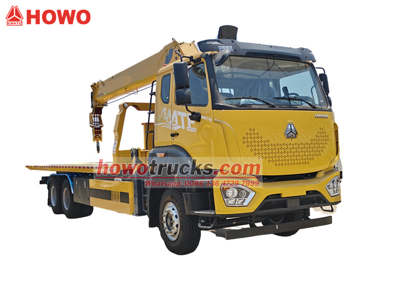 *รถบรรทุกยกพื้นเรียบ Howo 6x4 พร้อมเครนยกของหนัก 8 ตัน*