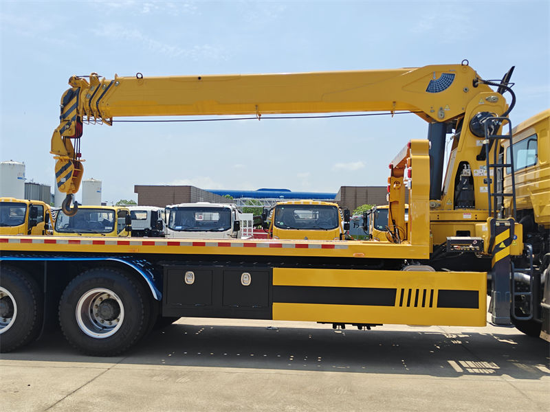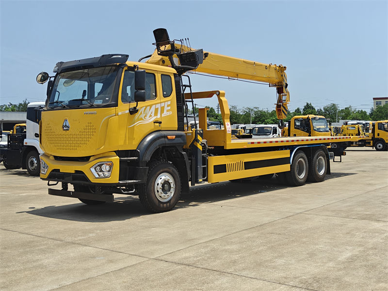 รถบรรทุกยกพื้นเรียบ Howo คันนี้ พร้อมเครนขนาด 8 ตัน เป็นรถบรรทุกพิเศษอเนกประสงค์และได้รับการออกแบบมาอย่างดี ติดตั้งเครื่องยนต์ดีเซลยี่ห้อ Yuchai จากประเทศจีน กำลังแรง 260 แรงม้า สามารถตอบสนองความต้องการใช้งานที่หลากหลาย ห้องโดยสารหรูหรา M9 รุ่นใหม่ สามารถรองรับผู้โดยสารได้ 3 คน พร้อมระบบปรับอากาศ มอบสภาพแวดล้อมการขับขี่ที่สะดวกสบายสำหรับผู้ขับขี่และผู้ปฏิบัติงาน เครนเป็นแบบบูมยืดหดได้ มีกำลังยกสูงสุด 8,000 กิโลกรัม หมุนได้ 360 องศา และยกสูงได้สูงสุด 16.5 เมตร