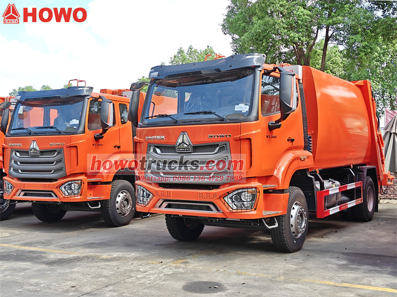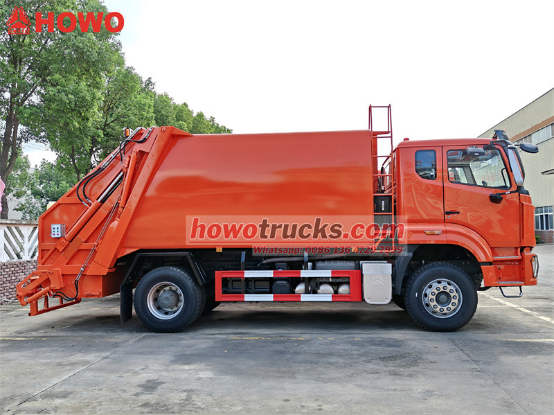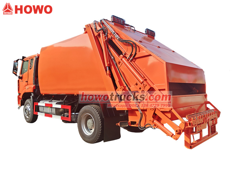 รถบรรทุกอัดขยะแบบโหลดด้านหลัง HOWO ขนาด 15 ลูกบาศก์เมตร พร้อมจัดส่งไปยังประเทศในตะวันออกกลาง