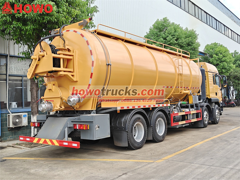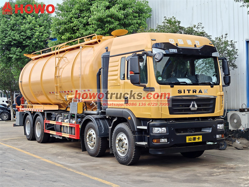 รถบรรทุกดูดสิ่งปฏิกูลสำหรับงานหนัก Howo 8x4 ได้กลายเป็นมาตรฐานของอุตสาหกรรมด้วยประสิทธิภาพที่ยอดเยี่ยมและการออกแบบที่ใช้งานได้หลากหลาย มาพร้อมกับเครื่องยนต์ Weichai ซีรีส์อันทรงพลังที่มีกำลังสูงสุด 350 แรงม้า ผสานกับปั๊มทำความสะอาดแรงดันสูง (แรงดัน 16-19 Mpa) และระบบดูดสิ่งปฏิกูล ทำให้สามารถดูดสิ่งปฏิกูลในท่อระบายน้ำ ถังบำบัดน้ำเสีย และสถานที่ที่ซับซ้อนอื่นๆ ได้อย่างรวดเร็ว รองรับถังสิ่งปฏิกูลขนาดใหญ่ถึง 20 ลูกบาศก์เมตร มีความจุมากและประสิทธิภาพสูงมากในการทำงานครั้งเดียว ใช้การออกแบบแบบโมดูลาร์และรองรับอุปกรณ์เสริมต่างๆ เช่น ม้วนสายด้านหน้า เกจวัดระดับของเหลว และหัวฉีดน้ำ เพื่อตอบสนองความต้องการที่หลากหลาย