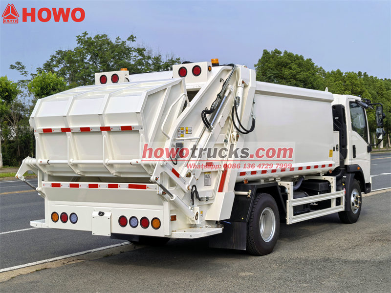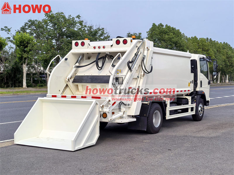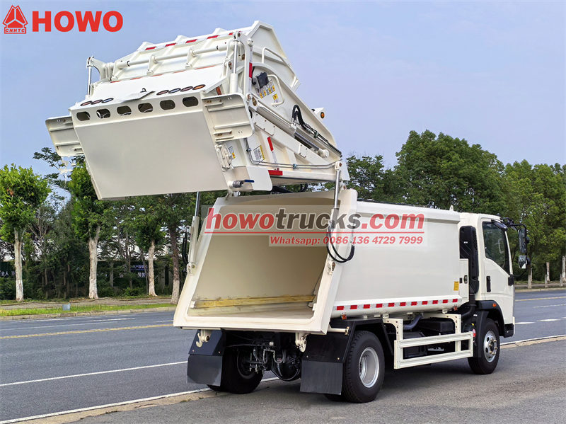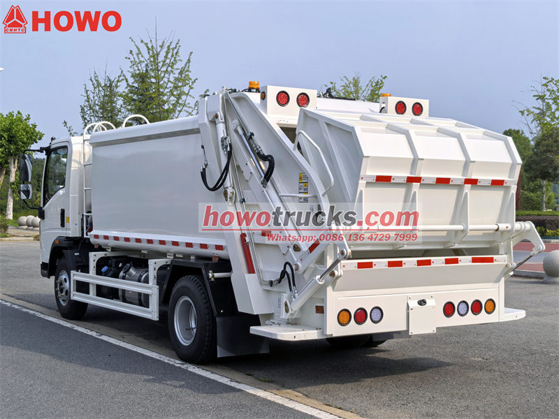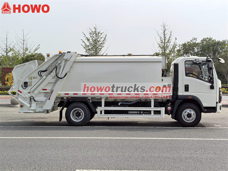 4×4, RHD drive is optionalเดอะรถอัดขยะ Howo 160 แรงม้ารถเก็บขยะ Howo รุ่นน้ำหนักเบา เป็นรถอเนกประสงค์ที่ออกแบบมาสำหรับการเก็บขยะในที่พักอาศัยและเชิงพาณิชย์ เนื่องจากมีความคล่องตัวและควบคุมง่าย มีถังเก็บขยะติดตั้งอยู่ด้านหลัง มีพลั่วบดอัดไฮดรอลิก และอุปกรณ์เสริมสำหรับยกถังขยะ (เลือกได้) ติดตั้งระบบควบคุม PLC แบบ Can Bus ทำให้ใช้งานง่าย รถเก็บขยะ Howo รุ่นน้ำหนักเบาแบบบรรทุกด้านหลัง เหมาะสำหรับการเก็บขยะด้วยมือ ขยะขนาดใหญ่ หรือขยะผสม โดยมีความจุตั้งแต่ 5 ถึง 13 ลูกบาศก์หลา