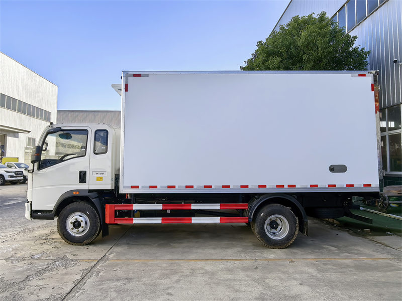 โฮโว 6รถบรรทุกห้องเย็นขนาด 1 ตัน เป็นยานพาหนะที่ออกแบบมาโดยเฉพาะสำหรับการขนส่งสินค้าแช่เย็นระยะไกล โดยติดตั้งอุปกรณ์ต่างๆ ดังนี้ Yuชา 140 แรงม้า 4 เครื่องยนต์ 4 สูบ ให้กำลังขับที่แข็งแกร่งและเสถียร เพื่อให้มั่นใจถึงประสิทธิภาพการขนส่งภายใต้สภาพถนนต่างๆ รถบรรทุกตู้แช่แข็งขนาดใหญ่ Howo จับคู่กับเครื่องยนต์ KX 55ชุดทำความเย็น 0 สามารถปรับกำลังการทำความเย็นได้โดยอัตโนมัติตามอุณหภูมิภายในและประเภทของสินค้า สามารถควบคุมอุณหภูมิภายในรถได้อย่างแม่นยำเพื่อตอบสนองความต้องการด้านการทำความเย็นของสินค้าที่แตกต่างกัน ชุดทำความเย็นนี้ใช้เทคโนโลยีการทำความเย็นขั้นสูงและระบบทำความเย็นที่มีประสิทธิภาพ สามารถลดอุณหภูมิภายในรถได้อย่างรวดเร็วและรักษาระดับอุณหภูมิให้คงที่ เพื่อให้มั่นใจว่าสินค้าจะคงอยู่ในอุณหภูมิที่เหมาะสมที่สุดระหว่างการขนส่ง