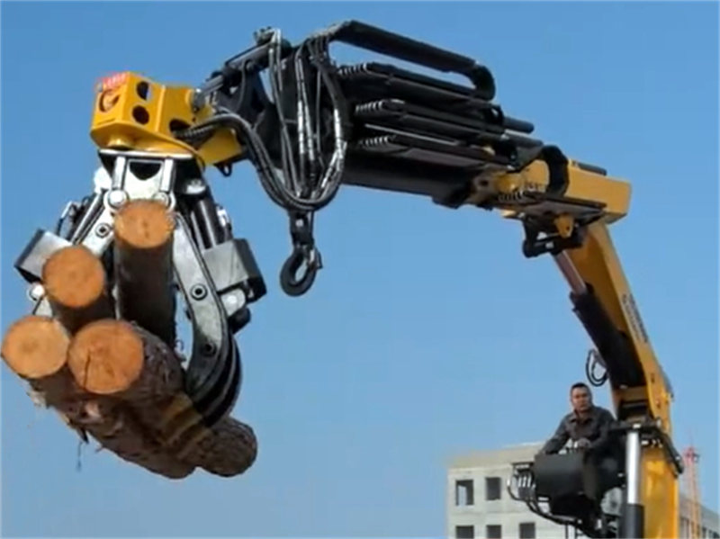 เครนนี้ติดตั้งอุปกรณ์จับยึด ช่วยเพิ่มความอเนกประสงค์ในการจัดการวัสดุประเภทต่างๆ ไม่ว่าจะเป็นไม้ เศษเหล็ก หรือวัสดุอื่นๆ อุปกรณ์จับยึดสามารถยก ขนส่ง และเทวัสดุเหล่านั้นได้อย่างมีประสิทธิภาพ