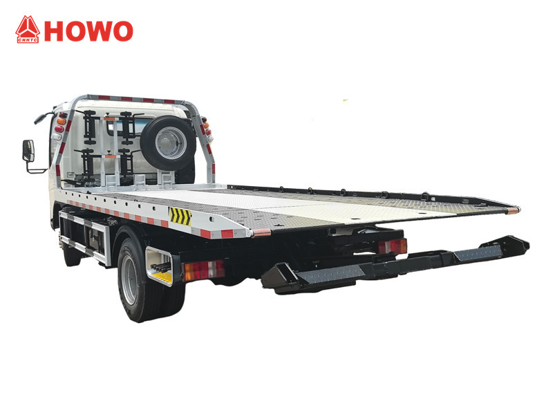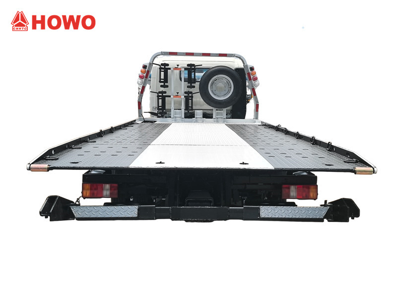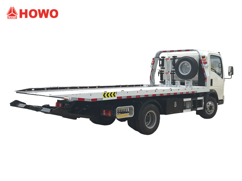 รถลากจูงพื้นเรียบ HOWO 3 ตัน ส่วนใหญ่ใช้สำหรับเคลื่อนย้ายรถเสีย รถประสบอุบัติเหตุ หรือรถจอดผิดกฎหมายบนถนน เพื่อให้การจราจรไหลลื่น รถลากจูงคันนี้ดัดแปลงมาจากแชสซีส์น้ำหนักเบา Howo RHD ฐานล้อ 3360 มม. เกียร์ WLY6TS55 ยาง 7.00R16 พร้อมระบบปรับอากาศ USB และระบบช่วยเลี้ยว ติดตั้งเครื่องยนต์ดีเซล Cummins ISF3.8S3141 141 แรงม้า 4 สูบเรียง รถคันนี้มีพื้นบรรทุกรับน้ำหนักได้ 3 ตัน พร้อมวินช์ยาว 21 เมตร และที่ยึดล้อ ใช้งานอย่างแพร่หลายในทางหลวง ถนนในเมือง ลานจอดรถ และสถานที่อื่นๆ