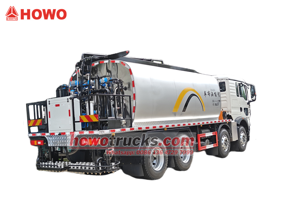 รถพ่นยางมะตอย HOWO 8x4 ขนาด 18 ลูกบาศก์เมตร ดัดแปลงมาจากแชสซีรถบรรทุก HOWO TX-W 8X4 มีระยะฐานล้อ 1800+3800+1350 มม. ติดตั้งเครื่องยนต์ MC07H.35-60 และเกียร์ HW13709XSTC2 ส่วนบนเป็นถังยางมะตอยขนาด 18 ลูกบาศก์เมตร สามารถบรรจุยางมะตอยแบบอิมัลชันและยางมะตอยร้อนได้ ติดตั้งปั๊มน้ำมันร้อนระบายความร้อนด้วยอากาศอัจฉริยะ RY40-25-160 และหัวฉีดยางมะตอย 36 หัวที่ด้านหลัง ความกว้างในการพ่น 6 เมตร และปริมาณการพ่น 0.2-3 กก./ตร.ม.²นอกจากนี้ยังมีเตาเผาดีเซลนำเข้า (ค่าความร้อน: 10×10)⁴ระบบทำความร้อนอัตโนมัติด้วยน้ำมันความร้อน และระบบควบคุมด้วยคอมพิวเตอร์อัจฉริยะในห้องโดยสาร (ซีเมนส์ ประเทศเยอรมนี)