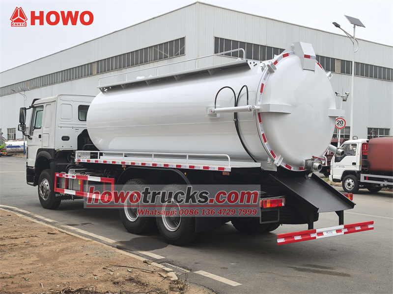 รถดูดสิ่งปฏิกูล HOWO 6x4 ขนาด 15 ลูกบาศก์เมตร ดัดแปลงมาจากแชสซีรถบรรทุก HOWO HW76 ระยะฐานล้อ 4600+1350 มม. ติดตั้งเครื่องยนต์ Weichai WP10.340E22 และเกียร์ Sinotruk HW19710 10 สปีด ตัวถังด้านบนเป็นถังเก็บสิ่งปฏิกูลขนาด 15 ลูกบาศก์เมตร ทำจากเหล็กกล้าคาร์บอน หนา 5 มม. สามารถยกถังและเปิดฝาท้ายได้ ติดตั้งปั๊มสุญญากาศ Jurop PN106D ที่มีอัตราการไหล 11,000 ลิตร/นาที รถคันนี้ยังติดตั้งท่อมอง, บันได, วาล์วปล่อยสิ่งปฏิกูลที่ฝาท้าย และคันโยกควบคุมไฮดรอลิกแบบแมนนวลที่ด้านคนขับ (สำหรับควบคุมการเปิด/ปิดฝาท้ายและการยก/ลดระดับถัง)