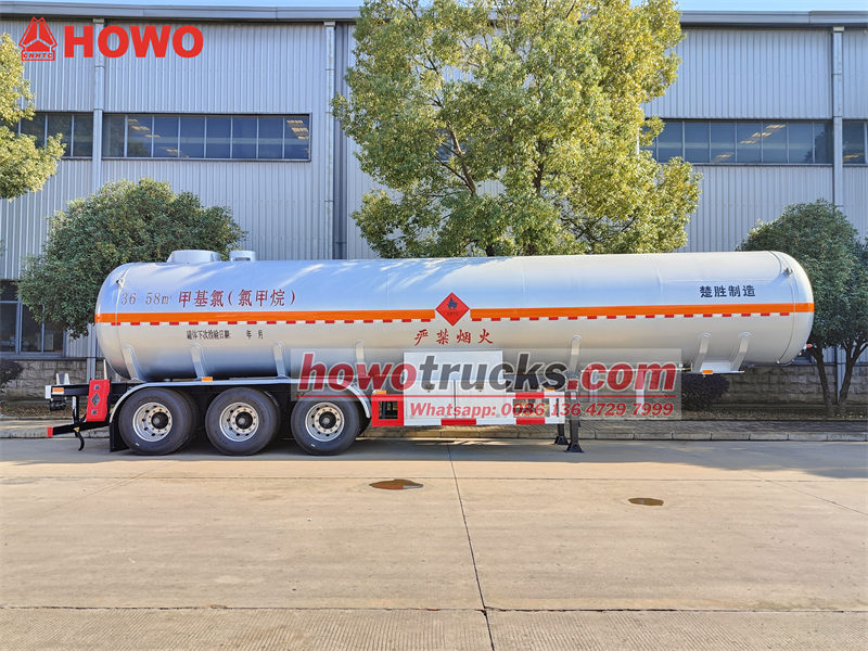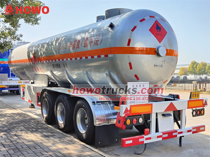 รถพ่วงบรรทุกสารเคมีเหลวรุ่น CS9402GYQA เป็นรถบรรทุกถังแบบสามเพลาที่ออกแบบมาโดยเฉพาะสำหรับการขนส่งเมทิลคลอไรด์ มีความจุ 40 ลูกบาศก์เมตร ตัวถังทำจากเหล็กกล้าความแข็งแรงสูง Q420R ทนแรงดันใช้งานได้ถึง 1.2 MPa ติดตั้งวาล์วปิดฉุกเฉิน ระบบ EBS ระบบกันสะเทือนแบบลม และดิสก์เบรก เพื่อความปลอดภัยในการขนส่งสารเคมีที่มีความเสี่ยงสูง ตัวรถมีโครงสร้างแข็งแรง ทนทานต่อการกัดกร่อนและเป็นไปตามข้อกำหนดการใช้งานระดับสูง เหมาะสำหรับสถานการณ์การขนส่งสารเคมีที่ต้องการความแม่นยำสูง